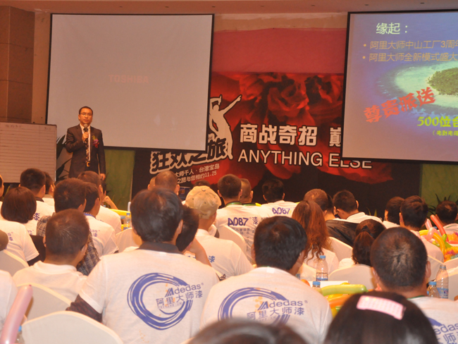金秋十月,丹桂怡然。阿里大師的205場杭州站金秋會議取得了完滿成功。阿里大師以一種全新的方式帶領各位兄弟姐妹進入雙贏的合作方式,讓客戶確實體會到廠家對油漆代理商的幫助和指導。1:品牌的宣傳力。2:核心油木工體系的建。3:品牌的終端形像的規(guī)范。