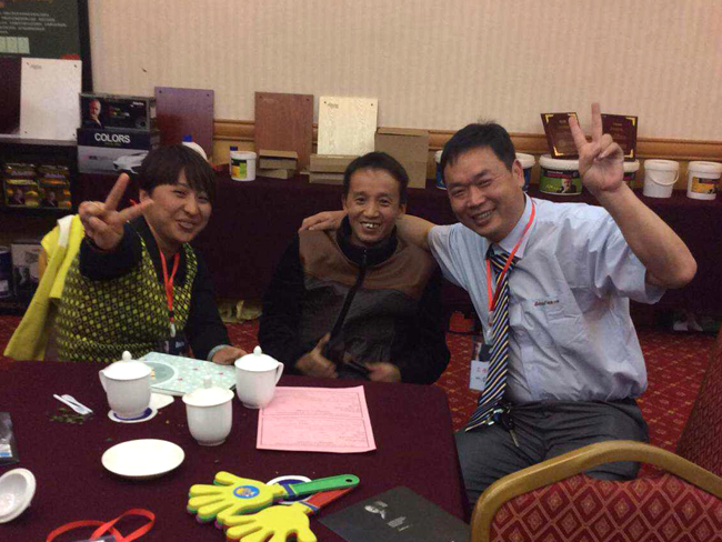 油漆廠家阿里大師推出*能輔材系列、優(yōu)色庫色彩系列等數(shù)十款新品,**工程師夏平紅女士對(duì)每一款新品進(jìn)行介紹及演練,現(xiàn)場的涂料代理商看完每一款新品的介紹與演練,引起了強(qiáng)烈的反響,興奮之情溢于言表,紛紛躍躍欲購,將現(xiàn)場的氣氛推上了另一高峰。