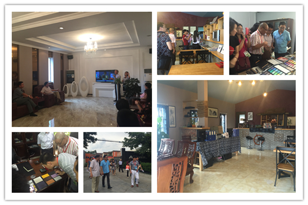 *先,中山阿里大師化工有限公司副總經(jīng)理黃維林先生陪同參觀了阿里大師辦公室以及樣板間。參觀團們一邊參觀,一邊交流探討,還不忘拍下自己感興趣的裝飾布局等。