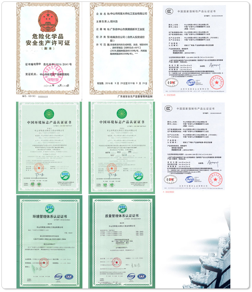 阿里大師在2005年通過了 ISO9001國際質量管理體系、中國環(huán)境標志產品(水性漆、油性漆產品雙十環(huán))、ISO14001 環(huán)境管理體系、國家強制性產品 3C等認證,的涂料品牌。